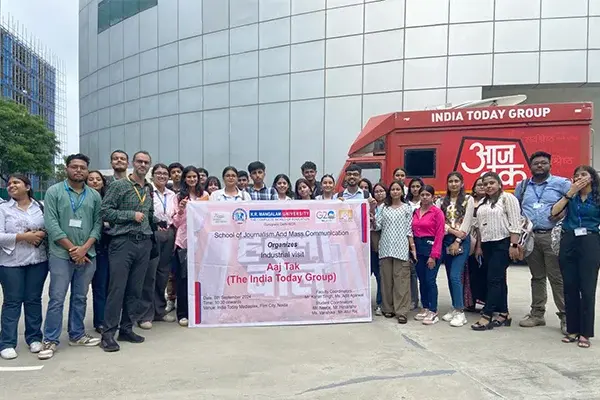 The School of Journalism and Mass Communication organised an industrial visit to India Today Group at Film City, Noida. The students participated in the famous ‘Halla Bol’ program of Aaj Tak, hosted by renowned journalist Anjana Om Kashyap. The students also interacted with many famous spokespersons of different political parties and asked questions related to the Haryana and Jammu and Kashmir elections, Bull Dozer politics, and other socio-economic and political matters concerning the society. The visit provided valuable first-hand experiential learning knowledge to the students in the field of journalism regarding conducting live debate programs and broadcasts.